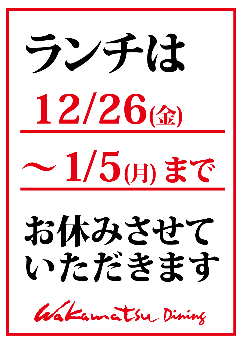 年末年始のランチのお休みは下記の通りとさせて頂きます。